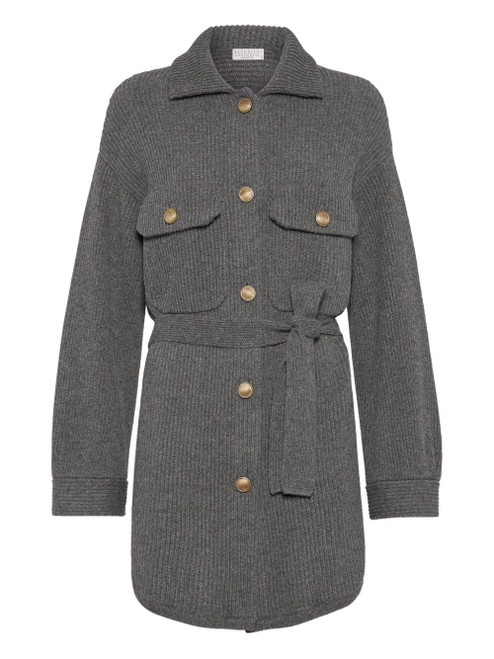 grey ribbed knit button fastening flap pockets belted waist long sleeves Wool and cashmere cardiganY418,300Y433,900